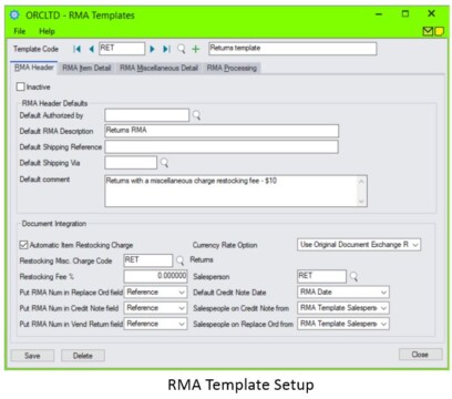 - Specify employees authorized to approve RMAs (they need not be Sage 300 users)