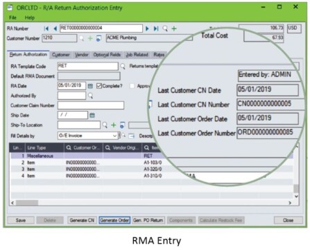 Return Material Authorizations 2020 requires Sage 300 2020 System Manager, Inventory Control, Order Entry and Accounts Receivable.